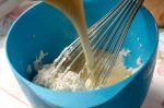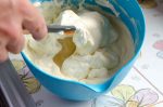 - Die Sahne mit einem Spatel unter die Frischkäsemasse heben.