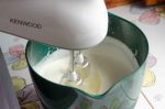 - Die Sahne mit den Quirlen des Handmixers steif schlagen.250 g Sahne