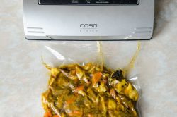 Ich verwende einen „Sous Vide Garer“ von Steba und ein Caso Vakuumiergerät.
